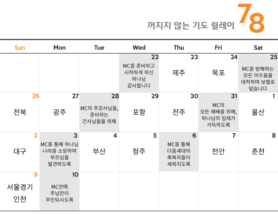 예수전도단 한국대학사역에서는 이런 하나님의 마음을 좇아 릴레이 기도를 시작합니다.